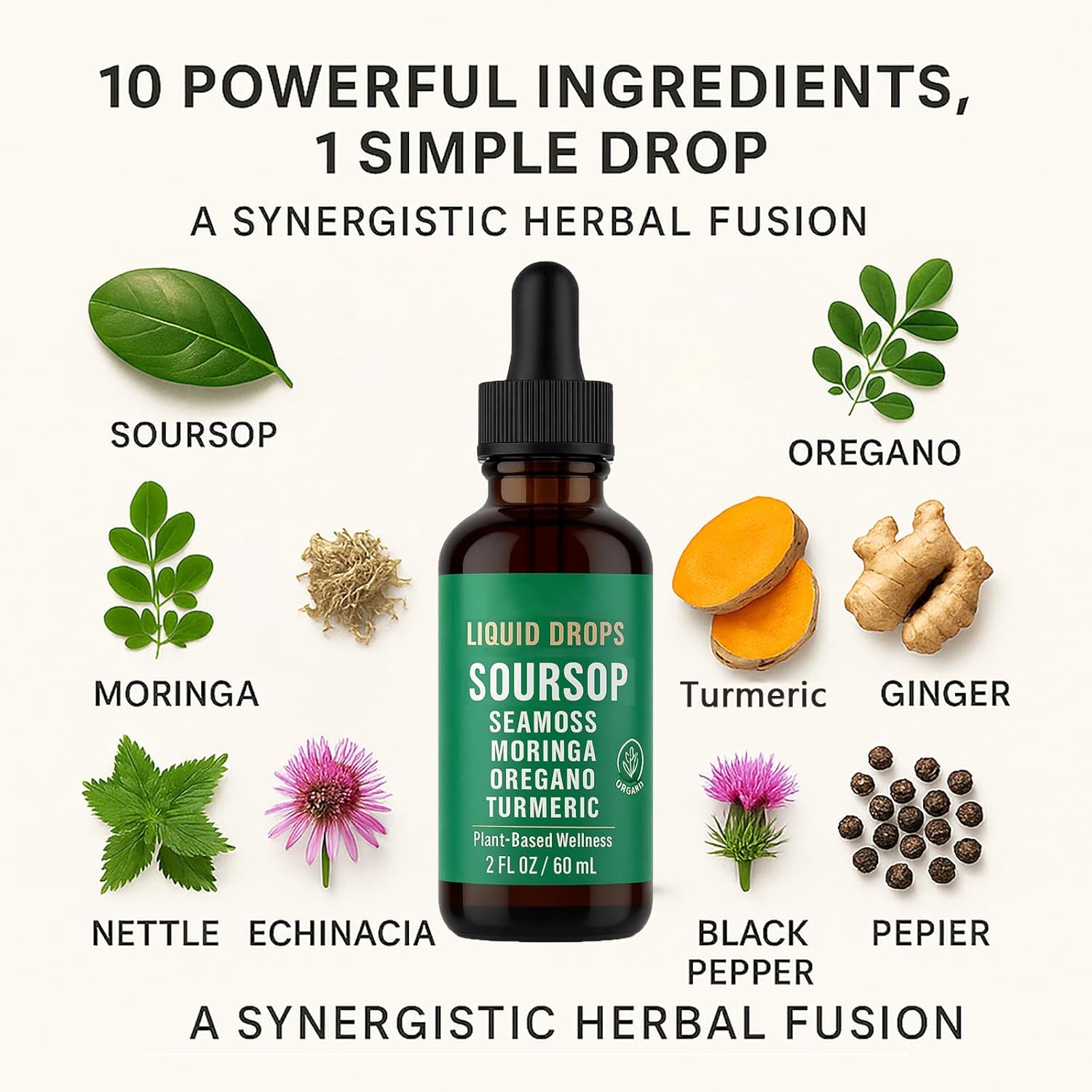 Soursop Natural Drops - 10-in-1 Soursop Bitters Liquid Drops with Sea Moss